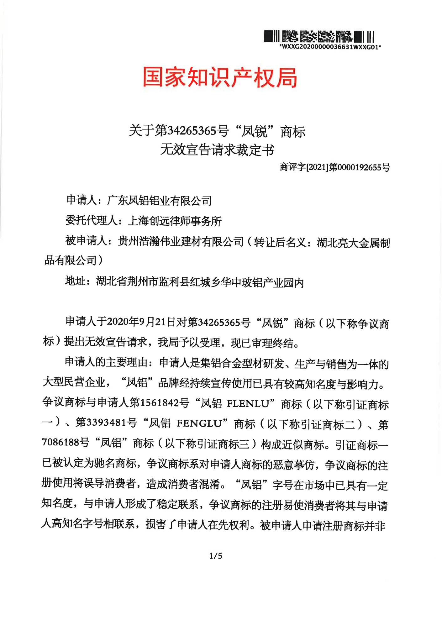 湘西土家族苗族自治州辉知队 | 国家知识产权局:“凤锐”商标无效